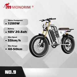 Monorim NO.9 Electric Bike for Adults, 55KM/h Max Speed, Mileage 45KM, 1280W peakMotor, 48V 20Ah Samsung Cells High performance power battery E-bike$899San Gabriel, CA