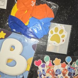 Bluey Dog Birthday Party Supplies with yellow Orange Blue Balloons, Birthday Banners, Cake Toppers (1 Banner, 25 Cake Toppers, 18 Balloons$12Riverside, CA
