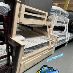 Twin Full Natural Bunk Bed With Mattress And Trundle Nueva Cama $1,299Fontana, CA