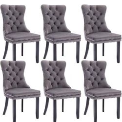 Tufted Dining Chairs Set of 6, Velvet Upholstered Dining Chairs with Nailhead Back and Ring Pull Trim, Solid Wood Dining Chairs for Kitchen/Bedroom/Di$299El Monte, CA