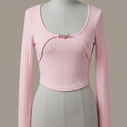 Pink Gold Charm rib-knit long sleeve cropped shirt$7South Gate, CA