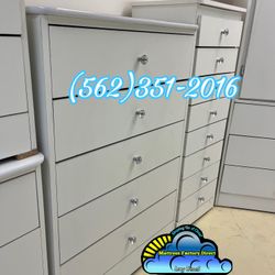 Five Drawer White With Diamond Knobs Chest Dresser $179Compton, CA