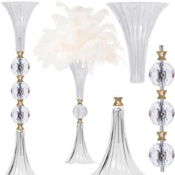 Crystal Acrylic Trumpet Vase for Wedding Centerpieces & Home Decor - 24.8" Clear Flower Stand with Ribbed Texture, Gold Accents, Table/Floor Vase for $50Riverside, CA