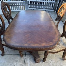 Solid Wood Dinning Set (Table + 6 Chairs) Steam Cleaned Tapestry Upholstery Nailhead Carvings Free Cocktail Cart$50Arcadia, CA