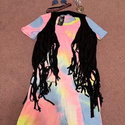 New Medium Hippy Hippie Shirt Fringe Vest Accessories Costume Tye Dye Boho 60s Dress $20Mount Baldy, CA
