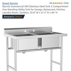 Commercial 304 Stainless Steel Sink 2 Compartment Free Standing Utility Sink for Garage, Restaurant, Kitchen, Laundry Room, Outdoor, 35.8" W x 21.3" D$160Santa Ana, CA