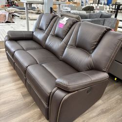 New Dark Brown Breathable Air Leather Power Reclining Sofa With USB $799Phillips Ranch, CA
