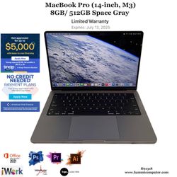 MacBook Pro (14-inch, M3, 2023) 8C/ 10C/ 8GB/ 512GB "H91318"$1,099Glendale, CA