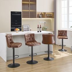 Swivel Bar Stools Set of 4, Counter Height Bar Stools with Back, Adjustable Bar Stools 24" to 32", Brown Faux Leather Bar Chairs for Kitchen Island (B$125Pasadena, CA