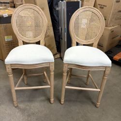 Nrizc French Country Bar Stools Set of 2, Farmhouse BarStools with Solid Wood Frame and Upholstered, Rattan Back Kitchen Bar Stool for Dining Room, Ki$130Hacienda Heights, CA