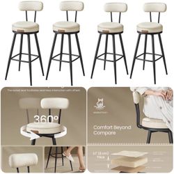 Bar Stools Set of 4. Swivel Bar Height Bar Stools with Back, Synthetic Leather with Stitching, Mid-Century Modern, 30-Inch Tall Ba$100Rancho Cucamonga, CA