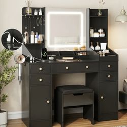 New in box 43.3" Dressing Table, Vanity Desk with 3 Lighting Modes Adjustable Brightness and Mirror, Makeup Vanities with Drawers and Storage. (Beige$125Rancho Cucamonga, CA