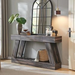 60" Farmhouse Entryway Table with Drawer, Entry Table with Storage, Sofa Table for Living Room, Behind Couch, Sofa(Dark Rustic Oak)$130Ontario, CA