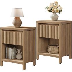 26" Tall Farmhouse Nightstand Set of 2 with Drawer, Modern Beside Table with Minimalist Fluted Design & Handle-Less Storage Engineered Wood Bed Side T$100Arcadia, CA