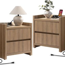 Night Stands Set of 2-Fluted Nightstands with Charging Station- Modern 2 Drawers Nightstand 25" Tall Bedside Table End Table, Large Night Stand for Be$135Arcadia, CA