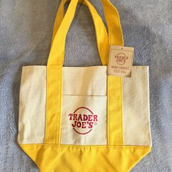 Trader Joe's Mini Canvas Tote Bag Yellow Beige Foldable Cotton Polyester$15Pomona, CA