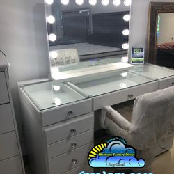 Makeup Vanity Desk with Mirror and Lights,Vanity Set with Mirror and Stool and Lights 3 Color,White Vanity Desk with Drawers,Make Up Table with Power $30City Of Industry, CA