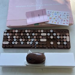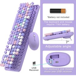 Colorful Wireless Computer Keyboard and Mouse Combo with Round Typewriter Keycaps, Retro Design, Power Switch, Ergonomic Design, 2.4GHz Wireless for W$27Compton, CA