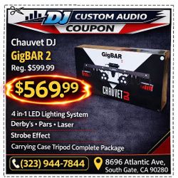 Chauvet Dj Strobe Lights UV Blacklight Laser Derby FX Carrying Case & Tripod Stand GigBAR 2 🚨 Payment Options Available 🚨 No Credit Needed 🚨 $1Whittier, CA