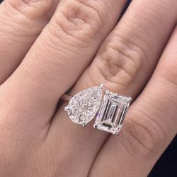 4.5 CTW F VS1 pear and emerald cut toi ei moi lab diamond Engagement ring $3,000Irwindale, CA