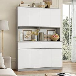 75" x 55" Kitchen Pantry Storage Cabinet with Glass Doors and Drawers, Wide China Cabinet Hutch$219Downey, CA