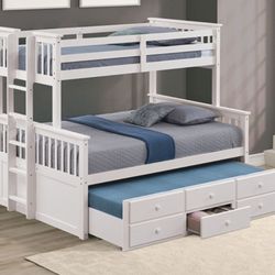Brand New White Twin Over Full Bunk Bed w Trundle Bed + Drawers $699Torrance, CA