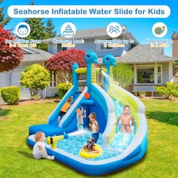 Seahorse Inflatable Water Slide for Kids Backyard | 5-in-1 Blow Up Splash Park with Climbing Wall, WaterSlide, Water Cannon, Basketball Hoop & 480W Bl$180Diamond Bar, CA