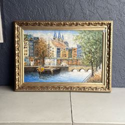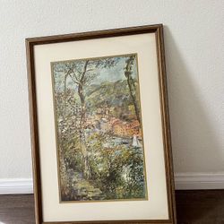 Framed the scene depicts a European town artwork 18/26 inches $85Long Beach, CA
