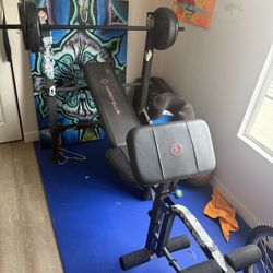 golds gym xrs 20 olympic workout bench with weights and barbell$400City Of Industry, CA