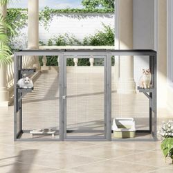 Cat catio, Cat Condo, 71 inch wide gray wooden cat enclosure playpen with shelves , NEW