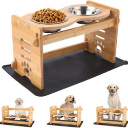 Bamboo Elevated Dog Bowls with Waterproof Spill Proof Mat for Medium Small Dogs and Cats,Adjustable Raised pet Bowl Stand Feeder with 2 Stainless Stee$15El Monte, CA