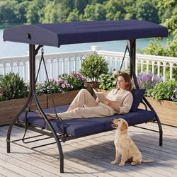 3-Seat Outdoor Patio Porch Swing with Adjustable Canopy & Backrest, Convertible Glider Bed with Stand, Removable Seat Cushion, 45° Tilt Adjustment for$180Fontana, CA