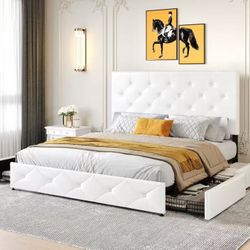 Queen Leather Platform Bed Frame with 4 Storage Drawers, Adjustable Upholstered Headboard$190Ontario, CA