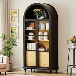 New 71'' Tall Arched Pantry Storage Cabinet with 2 Large Drawers & 3 Shelves, Display Cabinet with Glass Door for Kitchen Dining Room Living Room, Bla$160La Mirada, CA
