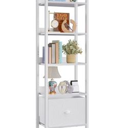 White 4 Tier Bookshelf with Drawer, Small Narrow Bookcase with Shelves, Moder...$55Irwindale, CA