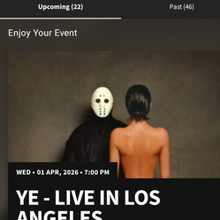 Kanye West Tickets April 1, 2026$600Los Angeles, CA