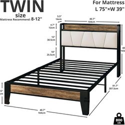 LIKIMIO Twin Bed Frames, Storage Headboard with Charging Station, Solid and Stable, Noise Free, No Box Spring Needed, Easy Assembly (Walnut and Beige)$90Los Angeles, CA