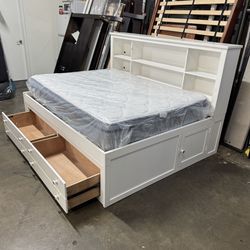 Full Size Bed Frame with Headboard Bookcase, 4 Drawers. $120Los Angeles, CA