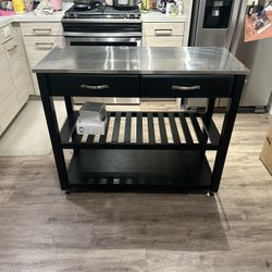 Assembled New Rolling Solid Wood Kitchen Island with Rubberwood Top Kitchen Island Storage Cart On Wheels $220Santa Fe Springs, CA