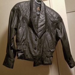 VINTAGE BLACK LEATHER BIKER JACKET$45Brea, CA