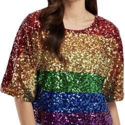 Tipsy Elves Rainbow Sequin Cropped Tee Small NWT Pride Festival Party Top$25Los Angeles, CA