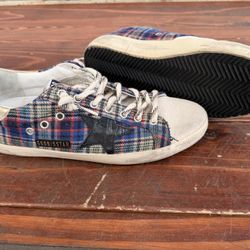 GOLDEN GOOSE Men’s Super-Star Plaid Flannel Low Top Sneakers Gold Heel Tab Size 42 EU / 9 US$395Windsor Hills, CA