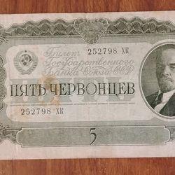 Soviet Union Russia USSR 1937 Large size 5 Rubles bill Banknote currency$40Los Angeles, CA