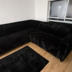 ✅️✅️2 pc black fur like wide welt corduroy sectional sofa with chaise✅️✅️✅️$318Los Angeles, CA