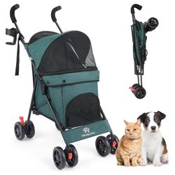 MoNiBloom Foldable Pet Stroller with Weather Cover, 3 Wheels Pet Strolling Cart for Small/Medium Dogs and Cats with Storage Basket and Cup Holder, Bre$60Santa Ana, CA