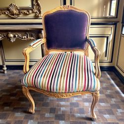 Custom Vintage Jewel Stripe Abergine French Imprt Velvet Silk Fabric Accent Chair 2 Avail$2,300Santa Monica, CA