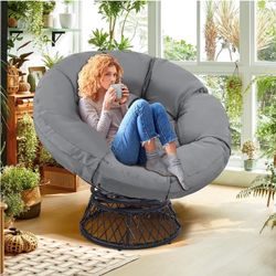 Chair with Cushion and Frame for Adults, Fluid 360° Swivel, Waterproof, Black Frame with Dark Grey Cushion