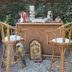 Vintage Bamboo Tiki Bar w/ Storage, Mirror & 2 Stools + Tiki Accessories$1,000West Covina, CA