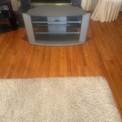 TV Stand By Table Craft 46” Across And 19” Deep Excellent Condition With Two Tempered Glass Shelves $45Garden Grove, CA