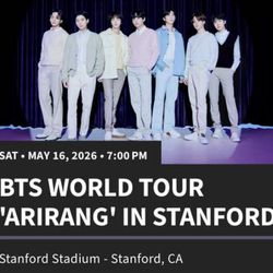 BTS tickets at Stanford stadium on May 16 at 7 pm$1,600South San Francisco, CA